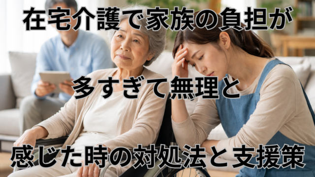 在宅介護 家族の負担 無理だと感じた時のポイントを徹底解説。負担が大きい理由、負担軽減の具体策、介護サービスの活用法、支援制度を分かりやすく紹介します。