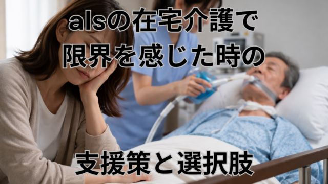 alsの在宅介護で限界を感じたときに、いま最優先で整える支援(24時間体制・制度・相談先)と、在宅継続/施設/入院の判断軸を具体例で整理します。