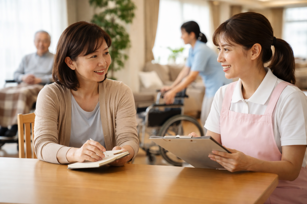 夜間対応がしんどい、入浴介助で腰が限界、平日の数時間だけでも働きたい…みたいに具体化すると、ケアプランが組み直しやすい流れです。
