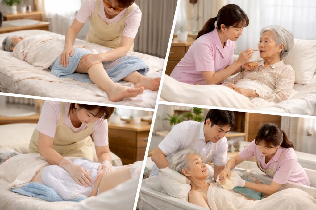まずは床ずれ・誤嚥・排泄・清潔といった毎日のケアを、完璧よりも「続く形」に整えるのが基本になります。