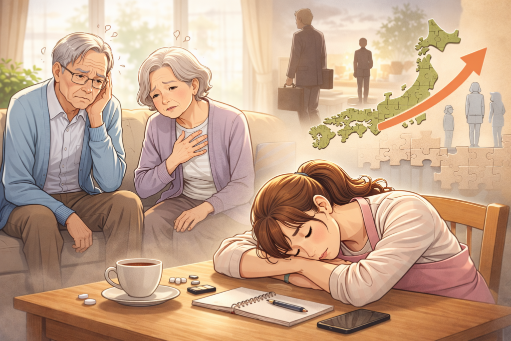 日本では在宅介護を担う家族の多くが、仕事・家事・介護を同時に抱えています。