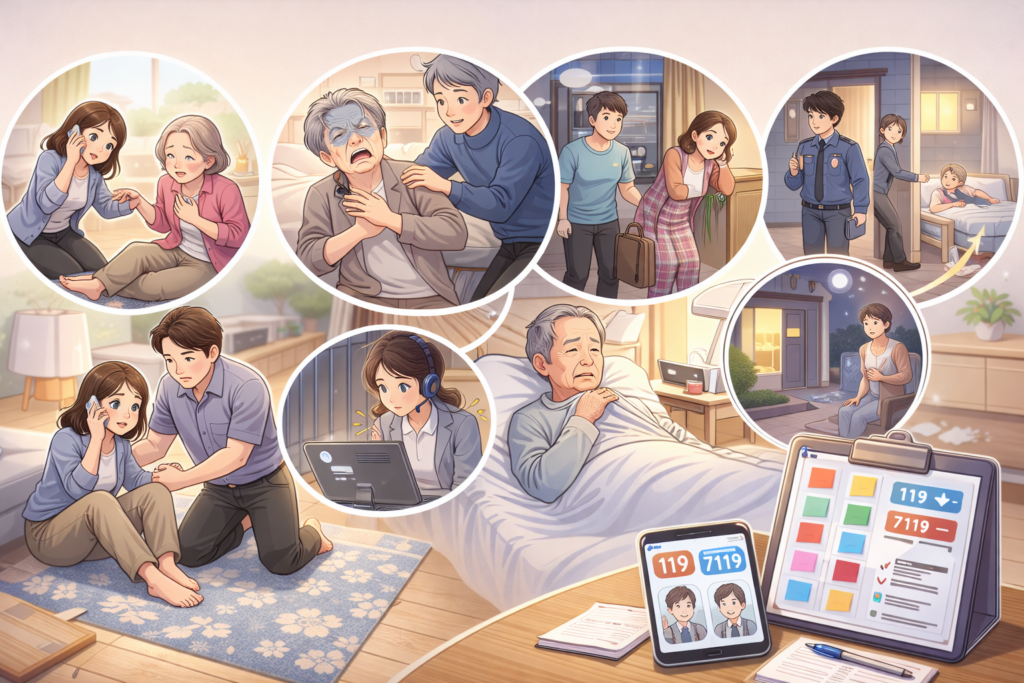 在宅介護 緊急時対応って、正直いちばん困るのが「これって救急車?」の迷いですよね。